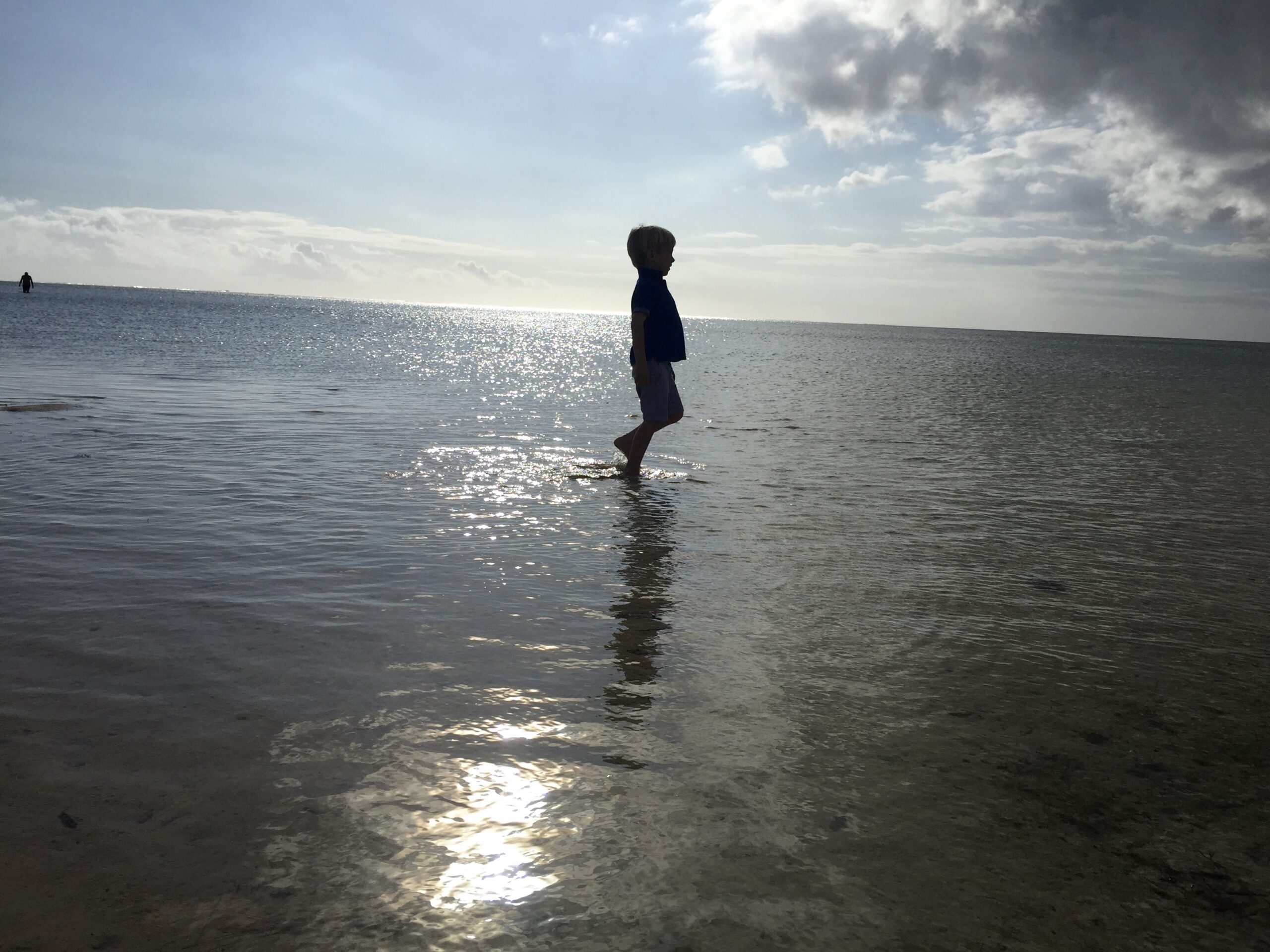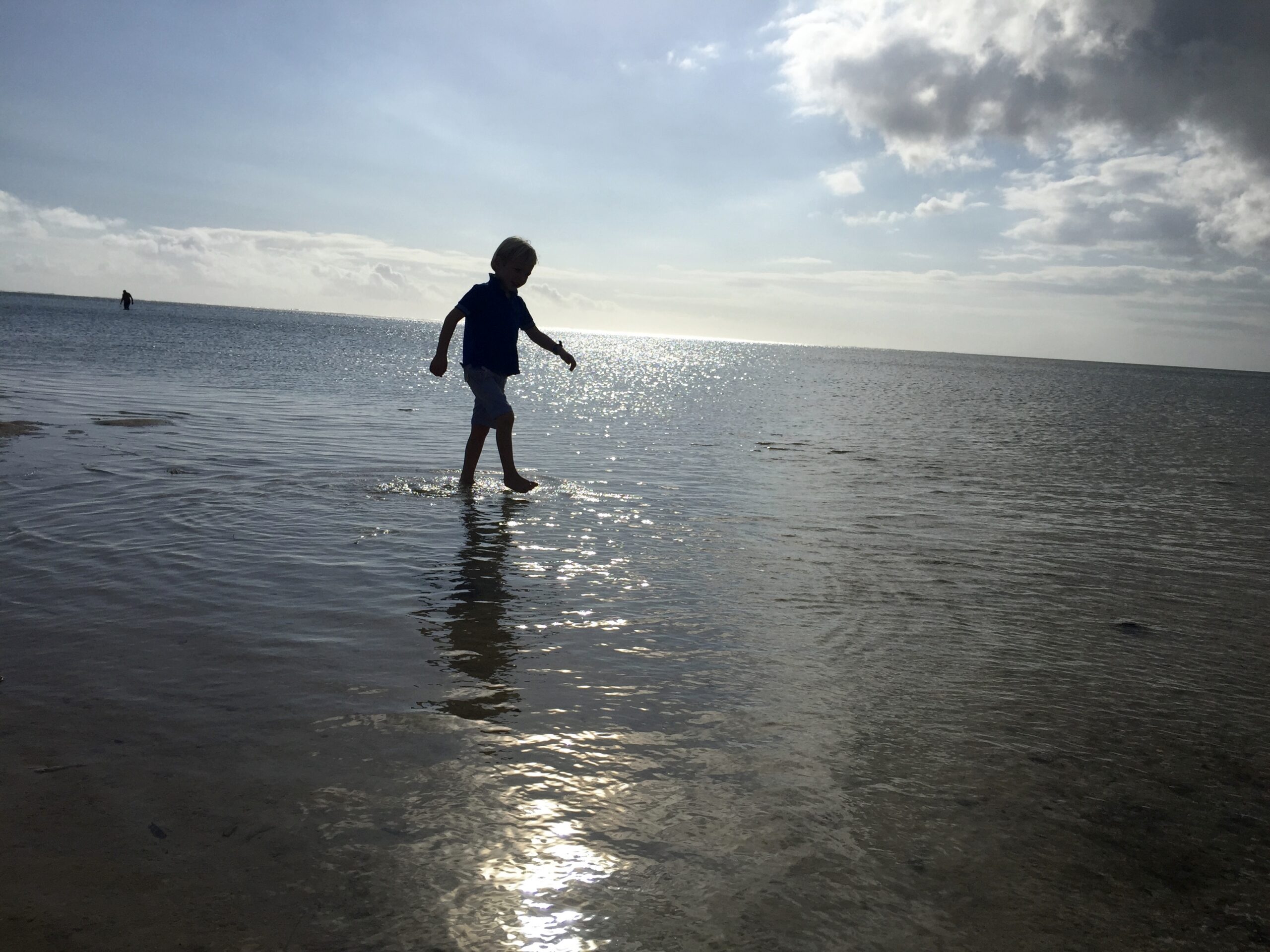 Parce qu’il est bon, dit-on, d’avoir des rituels le soir pour les enfants, il nous semble essentiel de poser celui-là : regarder ensemble la journée se terminer sur la mer. Hier soir, premier moment enchanteur sur la plage de Flic-en-Flac, presque déserte… Il règne un calme absolu, l’air est doux et même les petits crabes de sable sont jolis ;