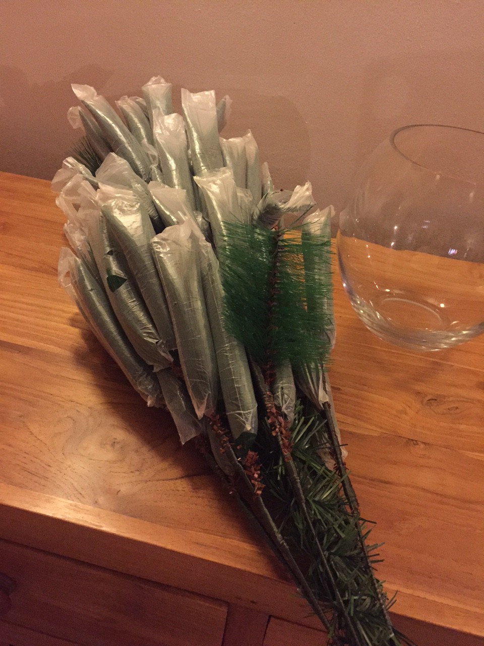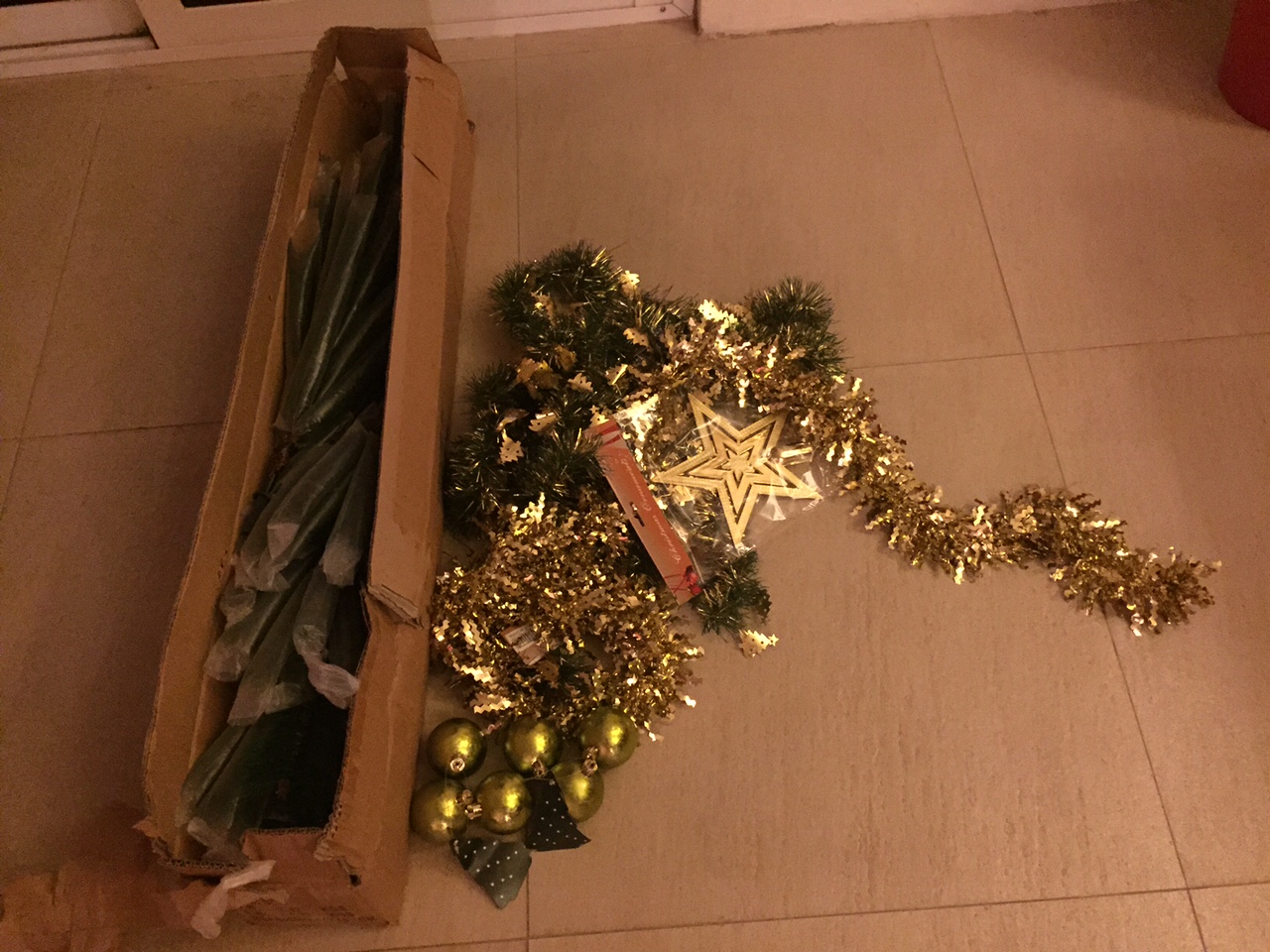 Bon finalement, il ne rentrait pas dans notre auto. Nous nous sommes procuré un autre plus adapté à la taille de notre véhicule motorisé. Déballage et construction du sapin, une première pour nous !