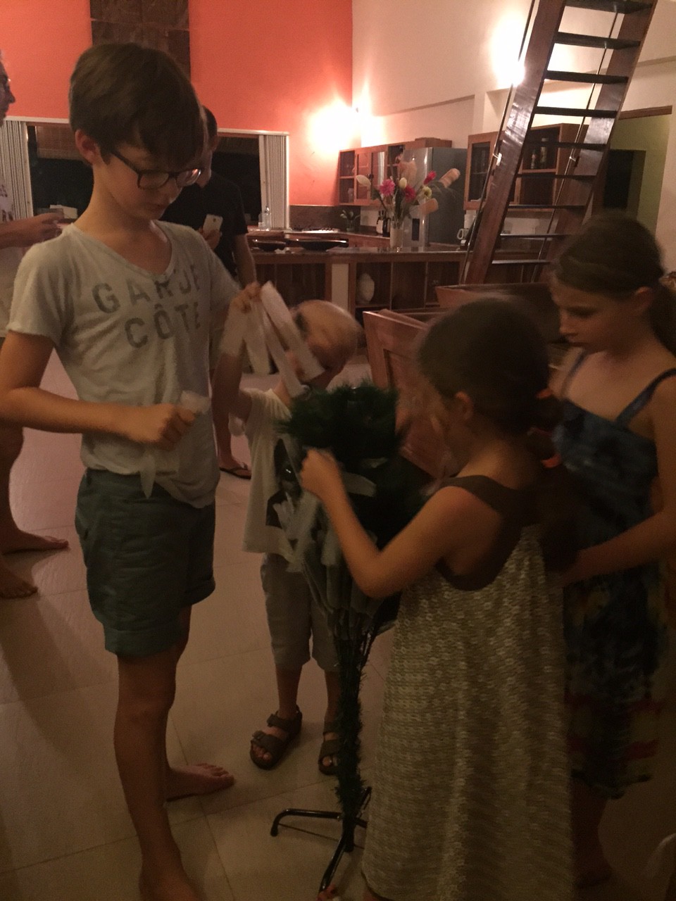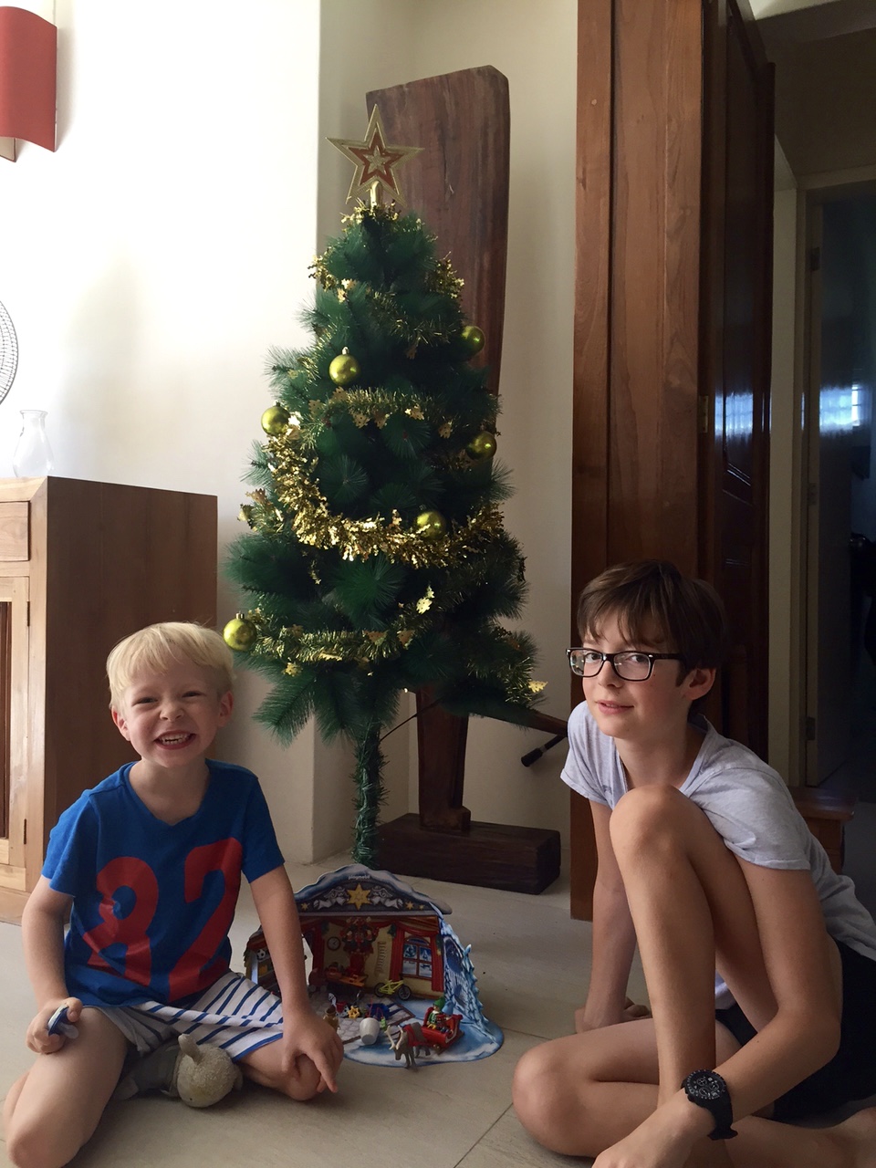 Nous voici arrivés dans notre nouvelle maison où nous fêterons les 5 ans d’Edgar, Noël et la nouvelle année. Il nous fallait absolument un sapin pour que le Père Noël puisse y déposer les cadeaux. La chaleur nous contraint d’oublier le sapin Nordmann avec ses aiguilles qui sentent si bon. Nous avions repéré celui-ci, il nous plaisait beaucoup…