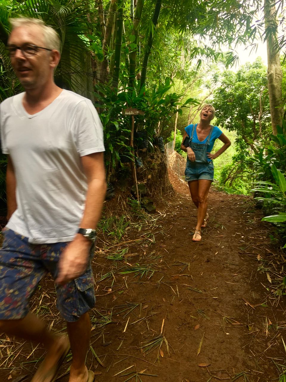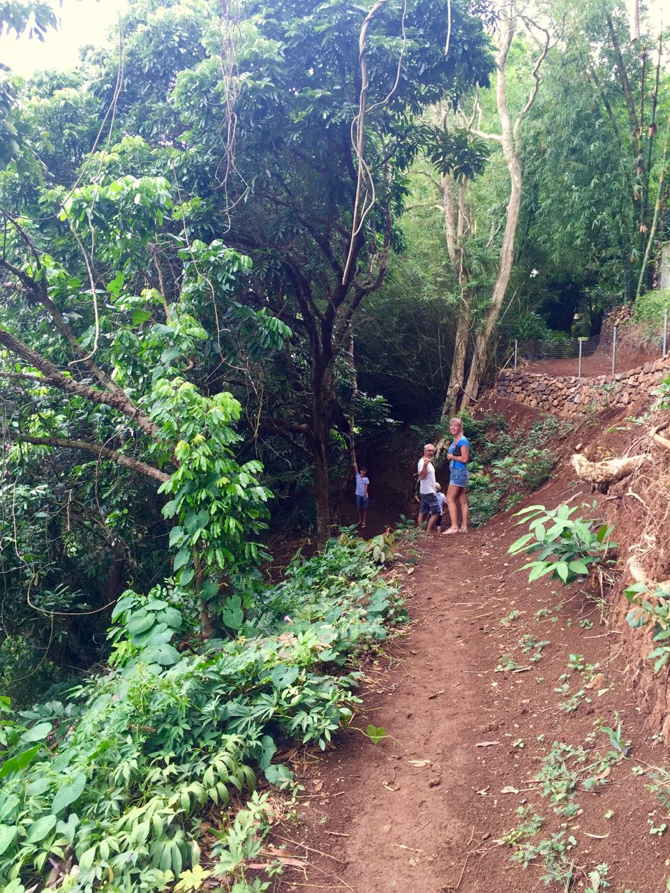 Au-delà de la maison, le parc se révèle aussi digne d’intérêt avec notamment des cascades dont on nous avait vanté la beauté et la fraîcheur. Chic ! Nous allons tremper nos pieds, voire plus, se réjouissait-on quand nous débutions le sentier. Après 15 minutes de descente sur un chemin ultra glissant et pas vraiment secure, nous avons trouvé une petite rivière mais point de cascade. Pour parfaire l’expédition, nous sommes littéralement dévorés par des moustiques très audacieux et tenaces. Nous repartons, un peu déçus car il y avait deux chemins et nous n’avons pas pris le bon. Les boulets ! Et non, non, non, ce n’est pas moi mais Monsieur qui marchait en tête ! Mon pitoyable sens de l’orientation n’y est pour rien, cette fois.