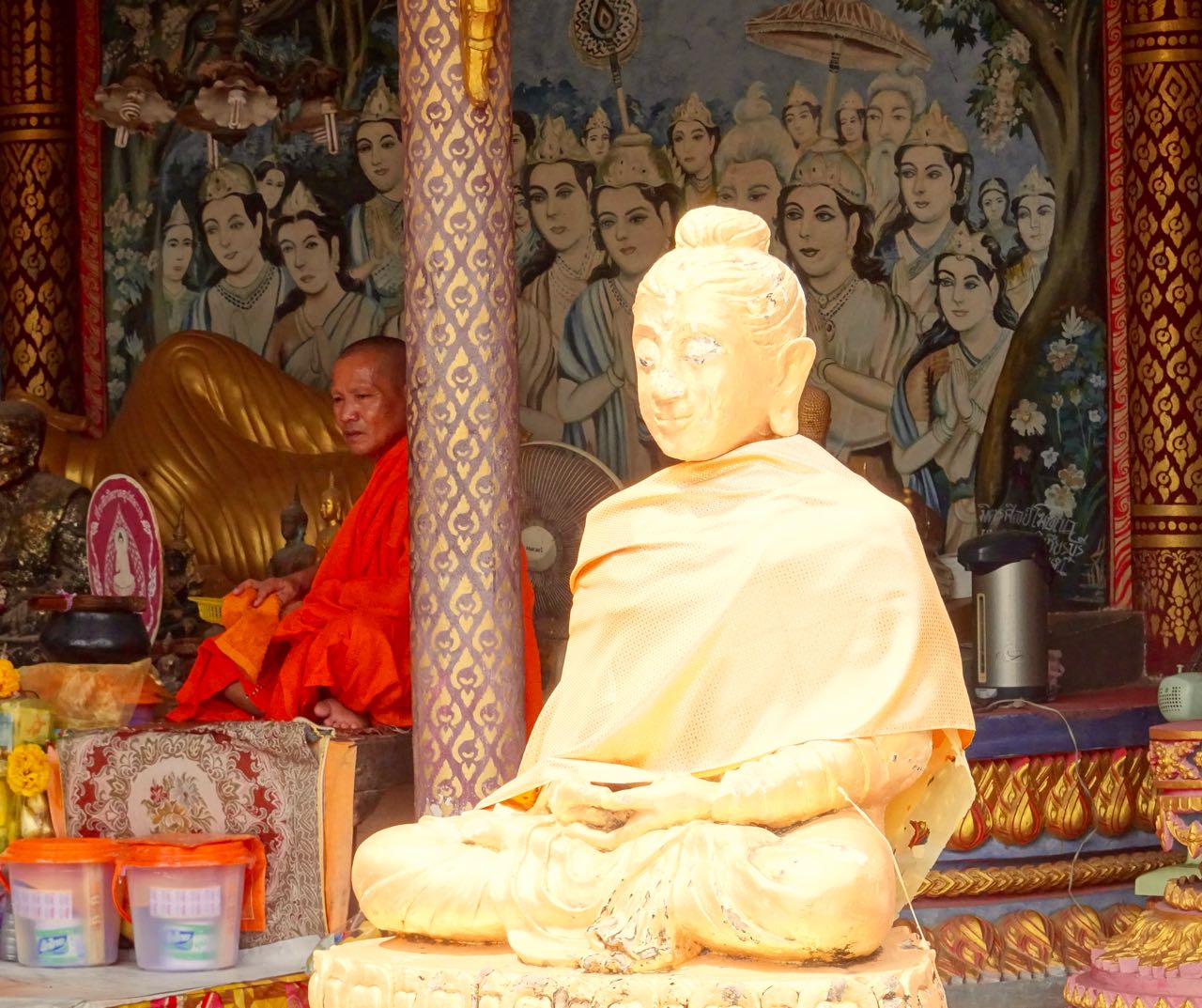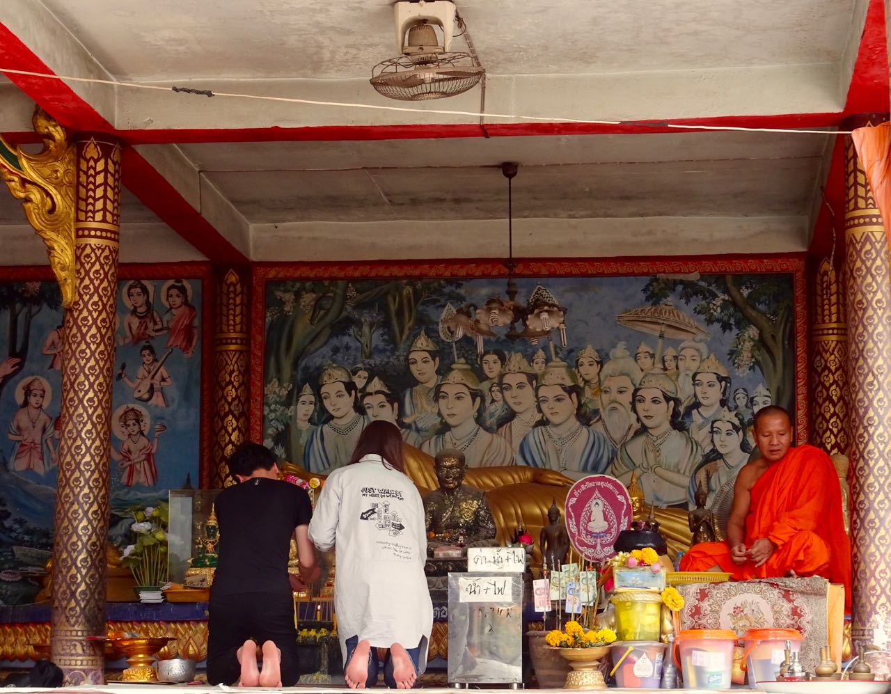 Nous avons de la chance, le temple n’est pas envahi de touristes. Les moines sourient. Les Thaï viennent se recueillir et prier.