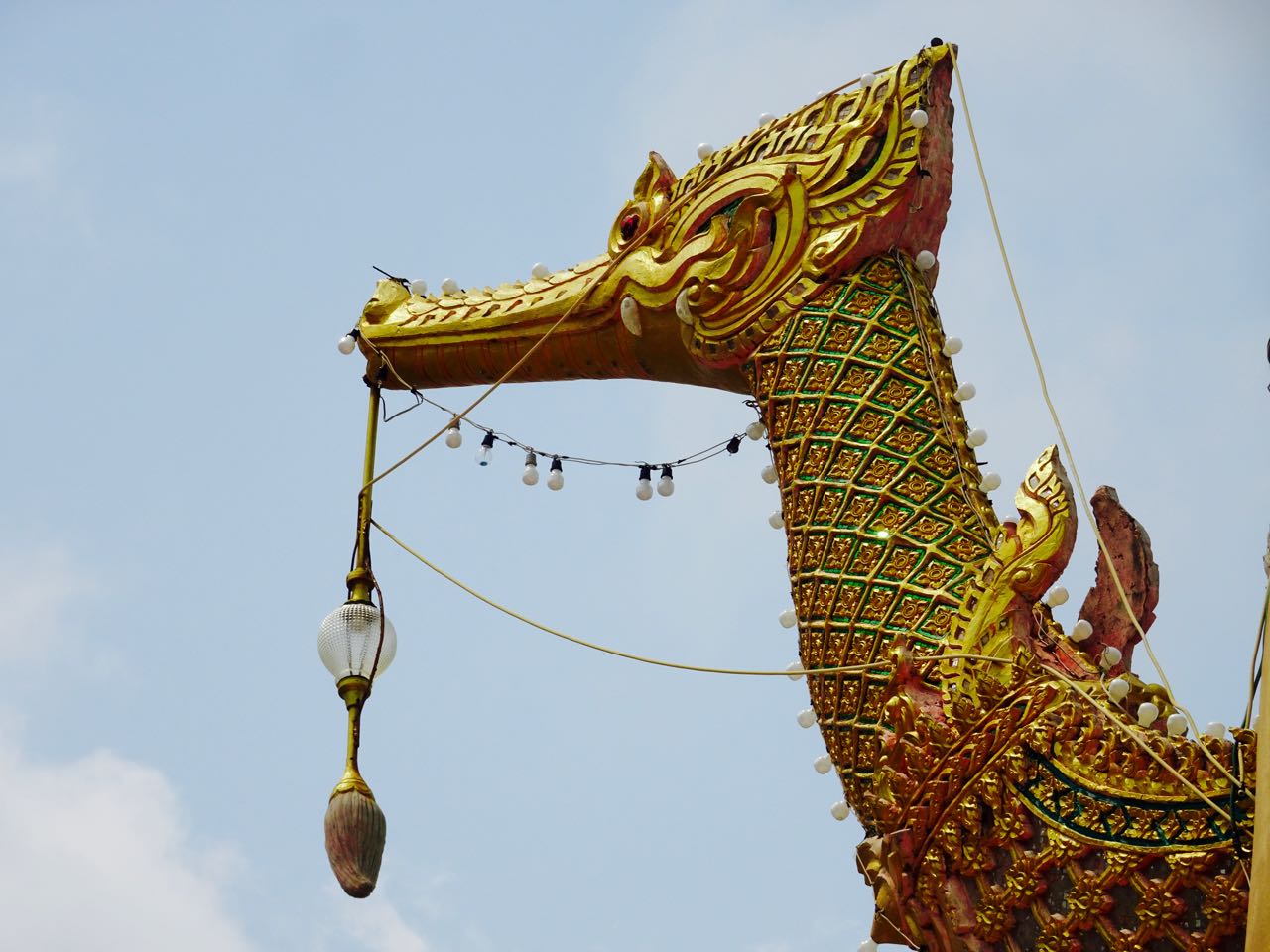 Nous empruntons enfin les loooongs escaliers. Bouddha s’impose. Sa main droite vers le bas est en connexion avec la terre. Cette posture appelée Mara symbolise la pureté, la constance et l’illumination. Deux Nagas, serpents à tête de dragon, veillent à sa protection.