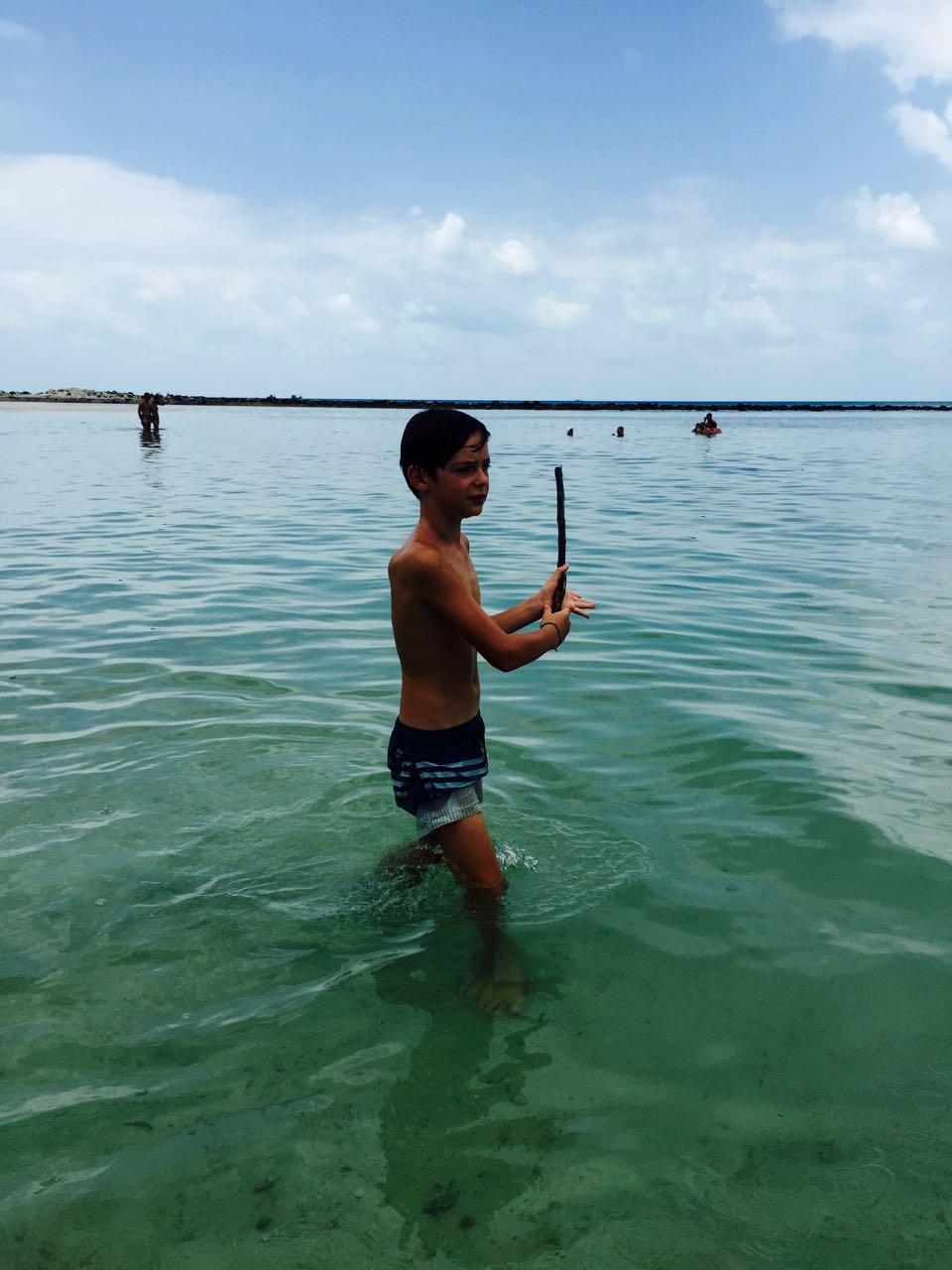 Nous embarquons et glissons de plage en plage, de spot en spot et nous émerveillons de la beauté préservée de la nature. Evidemment, nous plongeons ! Au troisième spot, Edgar se décide : il vient dans l’eau avec son masque cette fois. Au début il reste tout près de moi, s’agrippe à mon bras, puis il se détend, acclame les poissons, et d’un coup, il se détache pour plonger encore et essayer d’aller les toucher.
