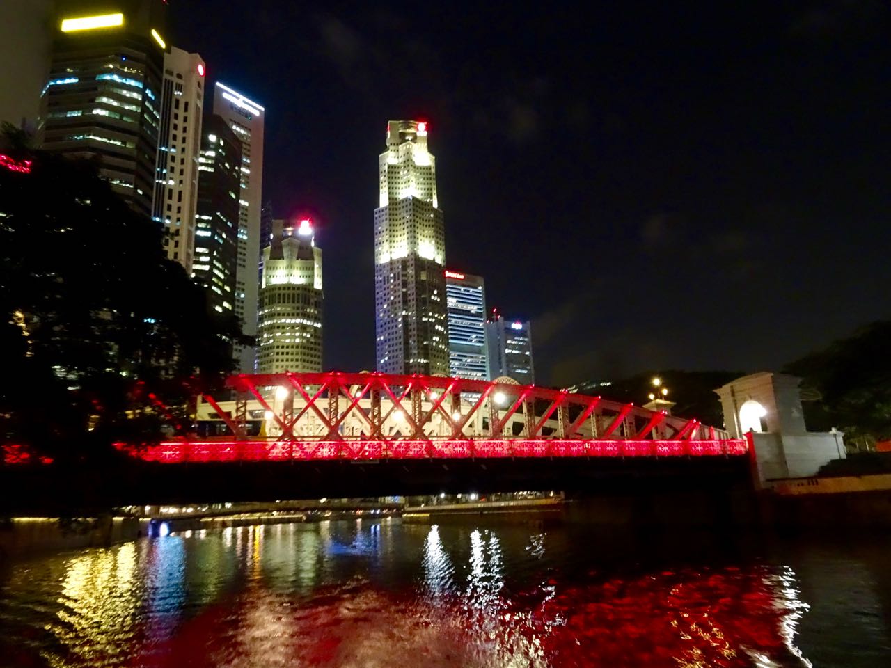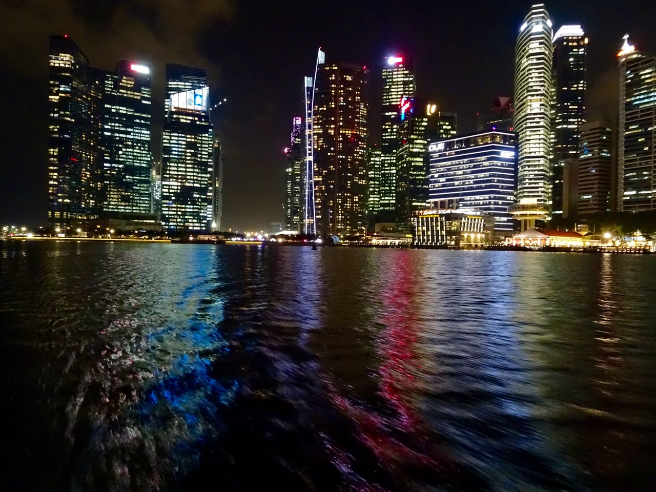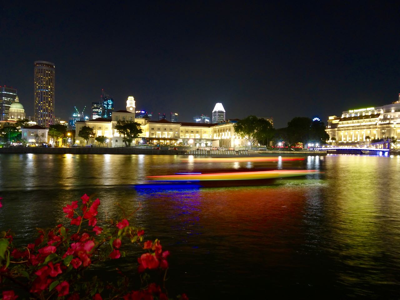 A la tombée du jour, nous embarquons depuis Clarke Quay sur un petit bateau de bois pour une ballade d’une petite heure. Effet « wow » garanti…