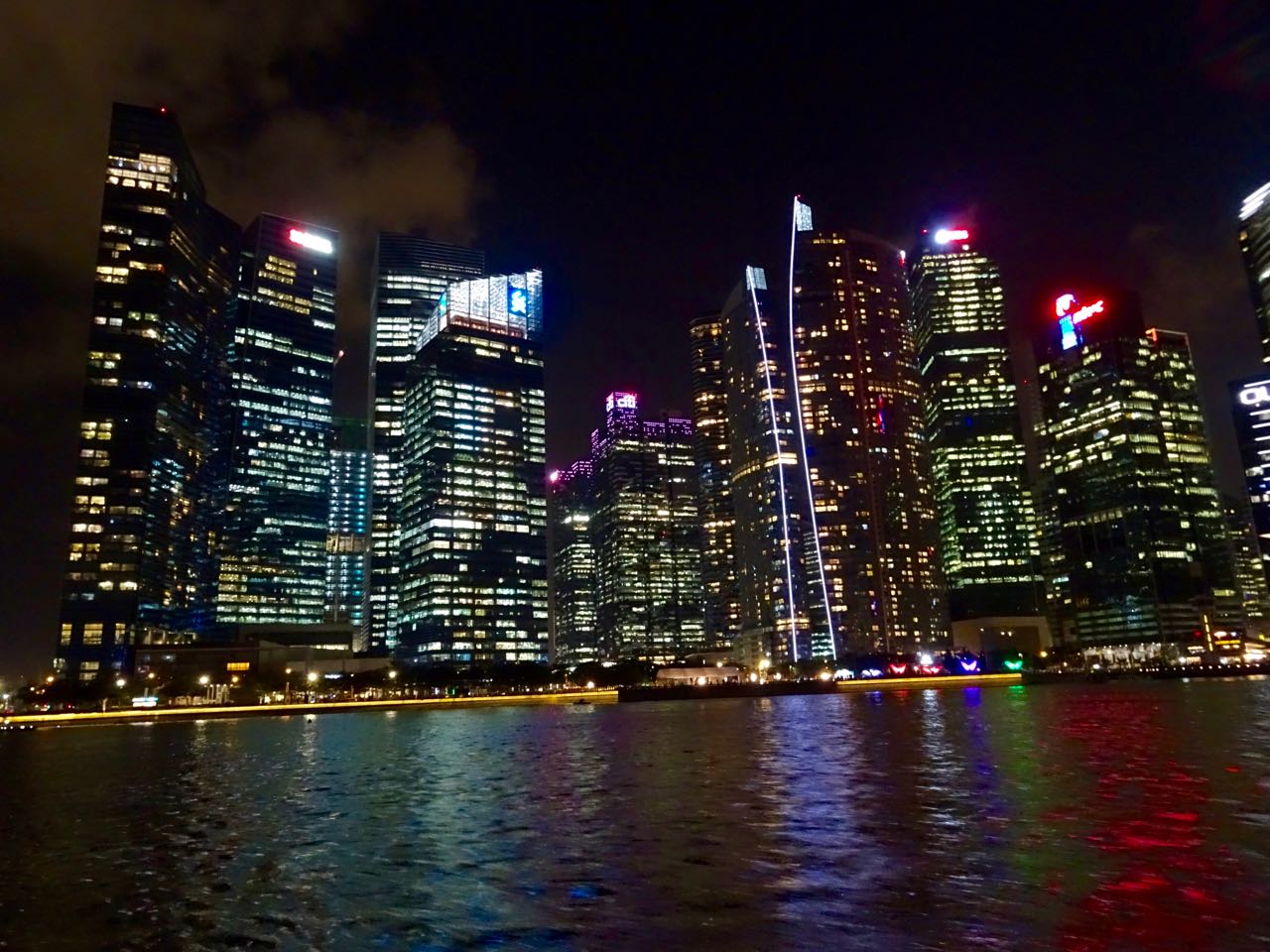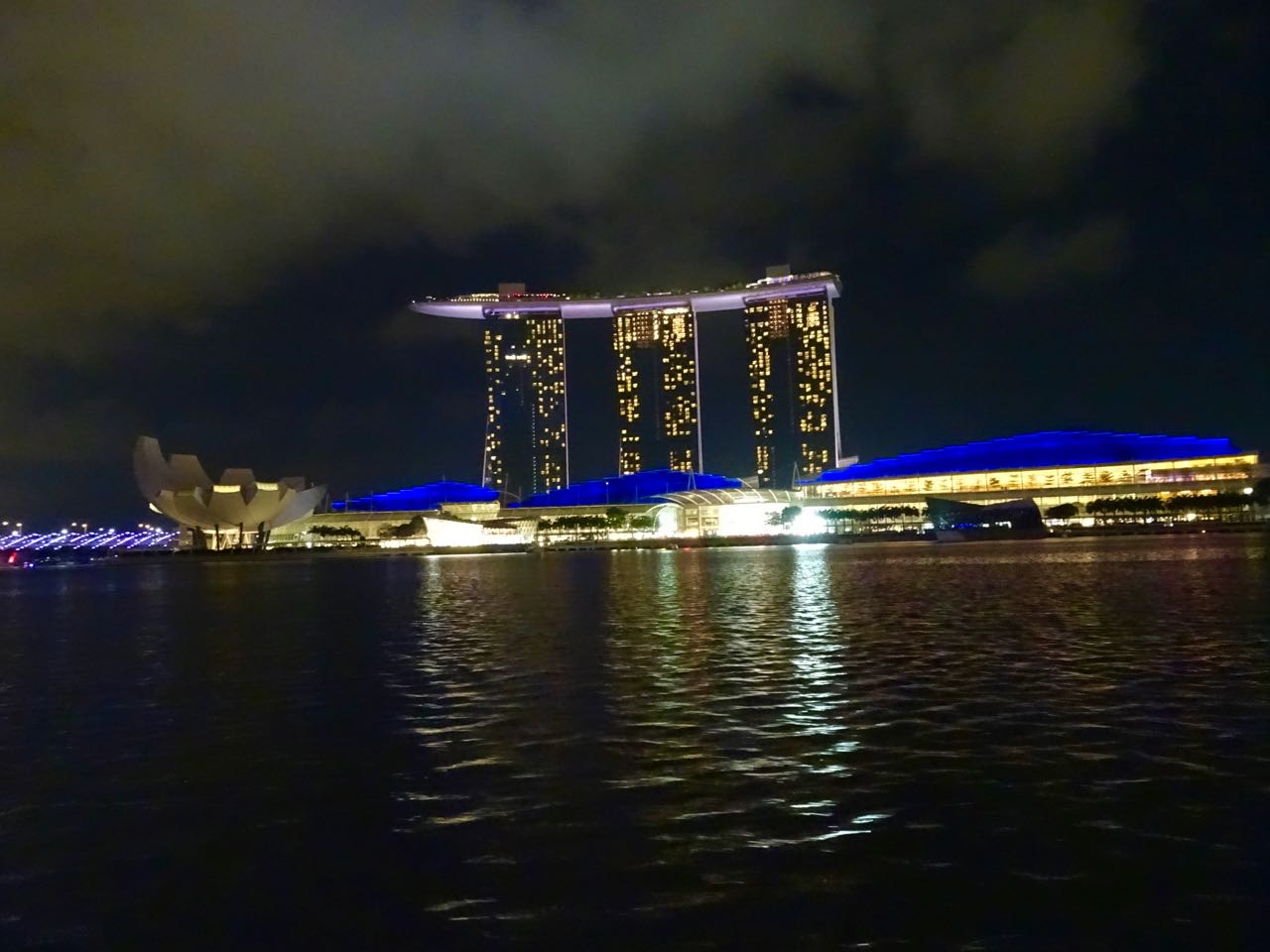 Singapour la nuit est éclatante et magique. Elle offre un cocktail inattendu mixant l’impressionnante verticalité new-yorkaise, la quiétude d’un soir aux Docks St Katharine de Londres, le souffle chaud de Bangkok et la féérie extrême de chez Mickey. C’est tellement parfait que cela serait presque trop… Mais peu importe, ça marche ! Nous avons les yeux brillants des lumières des buildings et affichons des sourires qui en disent longs sur notre enchantement. Nous cédons aux charmes de Singapour, doucement mais sûrement !