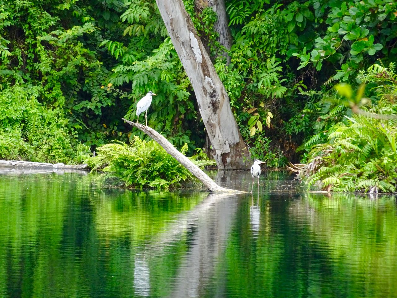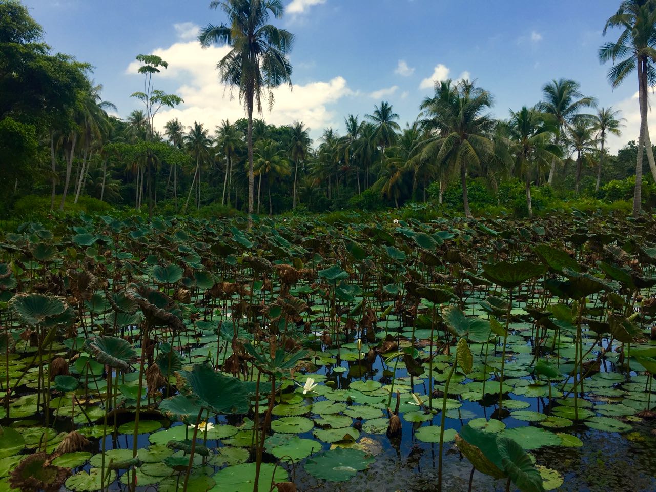 Nous choisissons l’option ballade familiale. Pas de session de VTT aventureuse dans la jungle pour nous, nous décidons de sillonner tranquillement les chemins. C’est parti… C’est incroyablement vert. La jungle est brute et dense. La présence de l’eau est marquante. Elle s’immisce partout de façon plus ou moins importante, mais systématiquement.