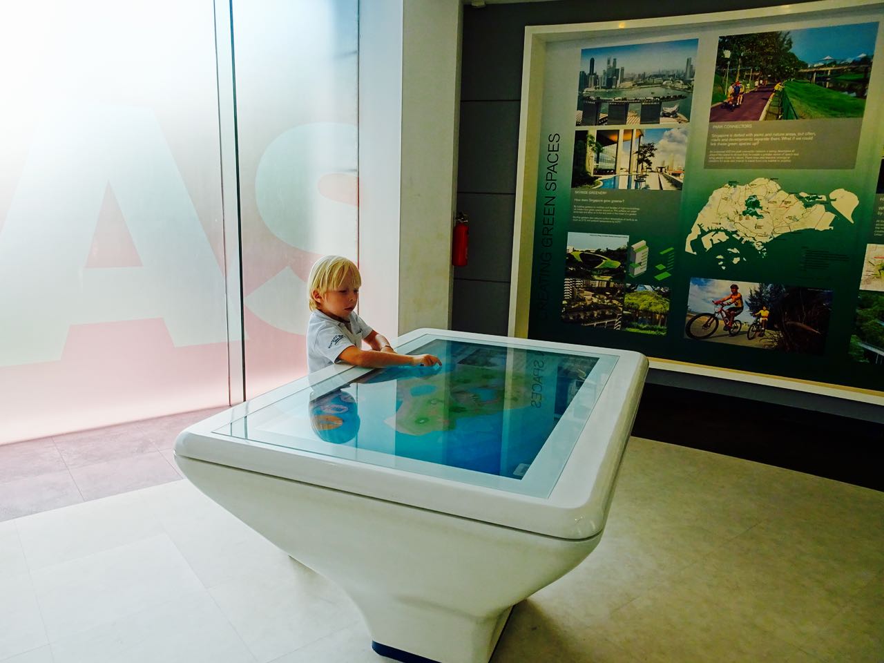 Les grandes étapes d’urbanisation de l’île principale sont expliqués ainsi que les projets de développement du territoires pour les prochaines années. Depuis les années 60, un travail colossal pour ne pas dire titanesque a été réalisé. Nous restons pantois devant la gestion urbaine au cordeau qui semble avoir trouver un certain équilibre entre la nécessité de loger ses habitants sur son petit territoire tout en préservant le patrimoine historique et les espaces verts. La visite est très ludique et interactive, les enfants jouent aux bâtisseur de ville du futur et ils adorent cela !